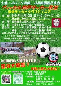 V神戸指導者によるサッカー教室を下記内容でおこないますので、是非参加してください。